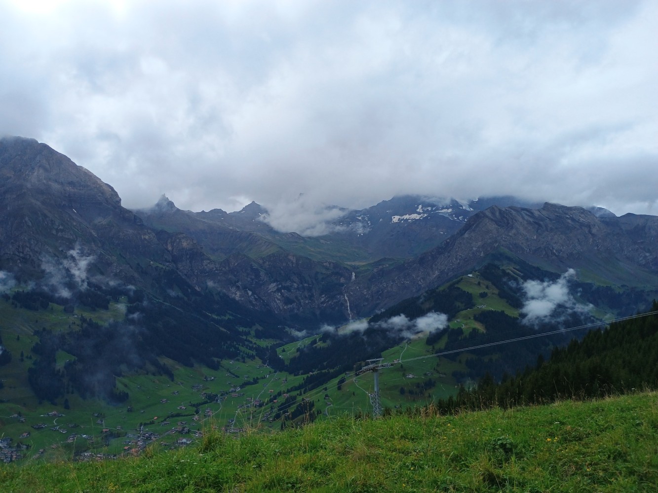 Today's hike started in the village of Adelboden. I took a train from Brig to Frutigen and then a bus to Adelboden. The route listed on Alltrails was bad so I followed the good old Swiss Wanderweg sign posts. It was raining and I got soaked. About 2400' of elevation gain ending up at the Berghaus Tschentenalp at the top station of the cable car. The last quarter mile was particularly steep. I had a spectacular Bundnerplatter lunch with a beer locally brewed, and then took the cable car down to Adelboden and returned to Brig with the bus and train.