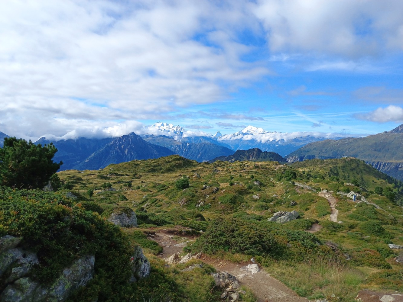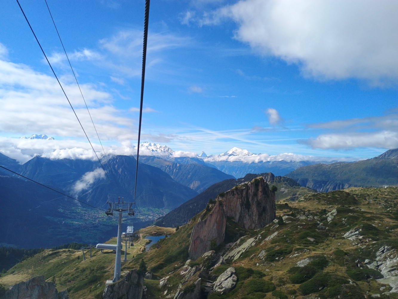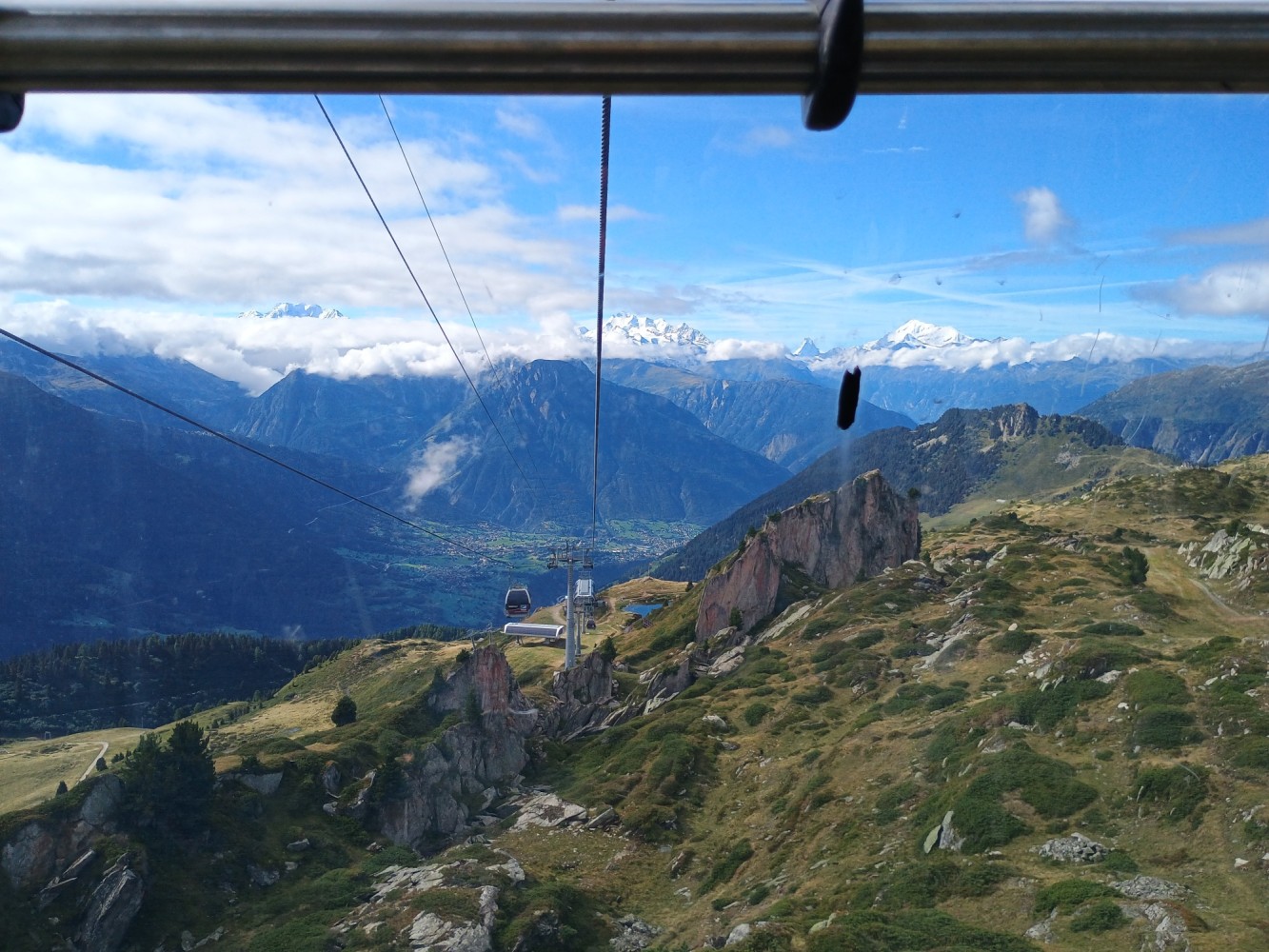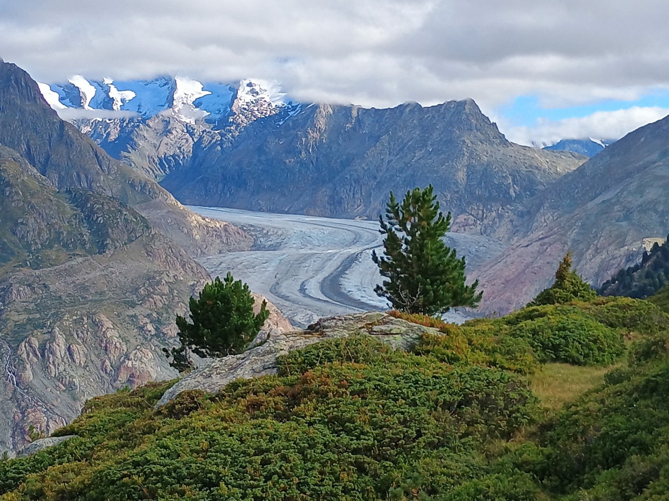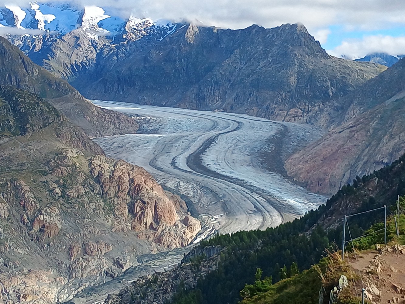 Changed plan! It was finally beautiful weather so I decided to do a hike with a view. Still a bit tired from yesterday's hike in the rain, I did this one with quite a bit of elevation gain. While still cloudy, there were breakthrough moments with spectacular long range views of the southern alps including the Matterhorn. This hike ends at the starting point of the Aletschglacier hike I did with Alex and Claudia in 2021.