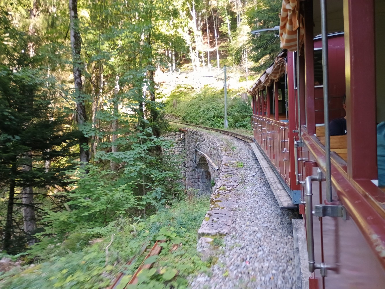 The cog-wheel train travels up the track - the trip takes about 45 minutes.