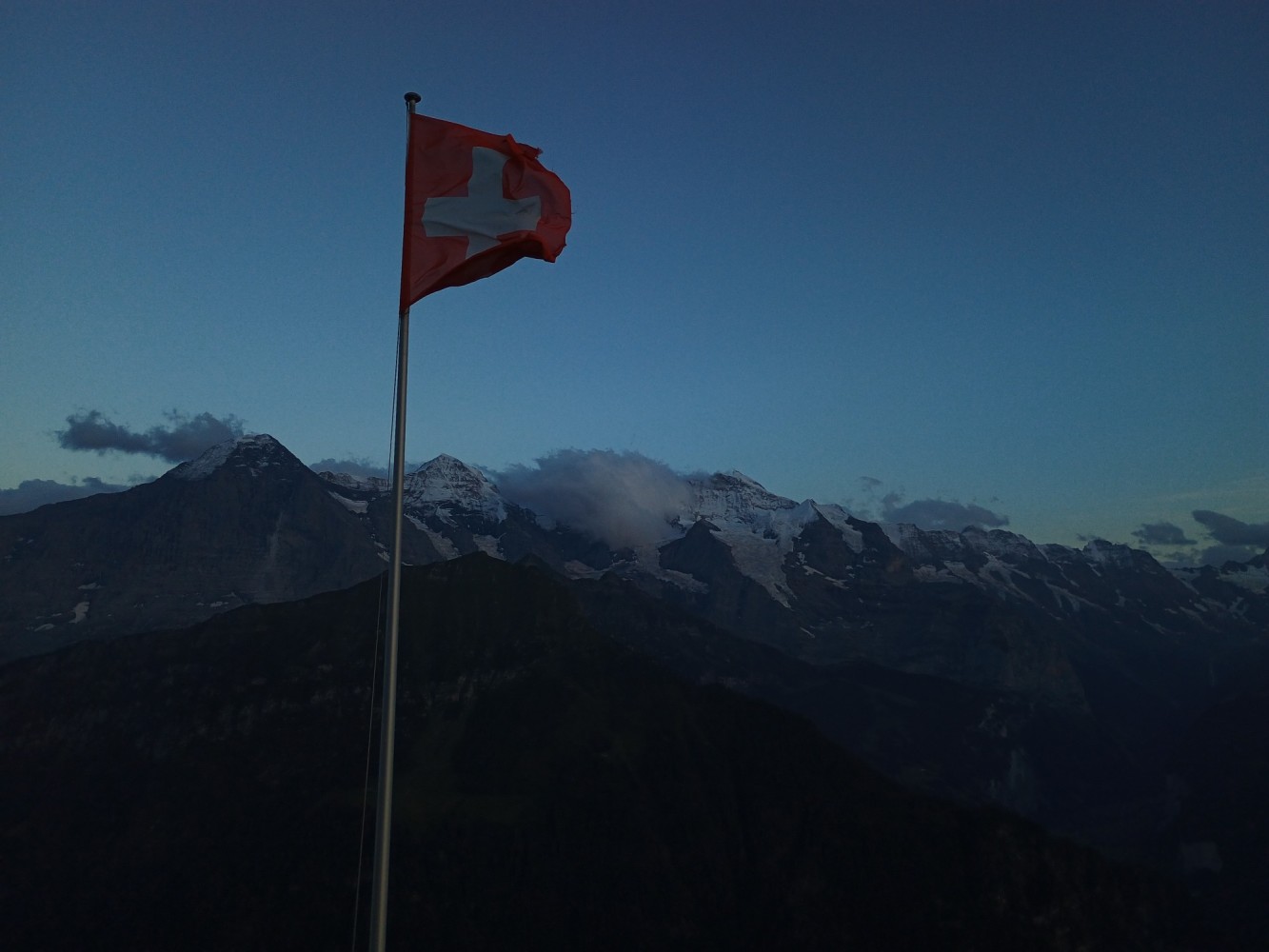 Sun just hitting the top of the Jungfrau.