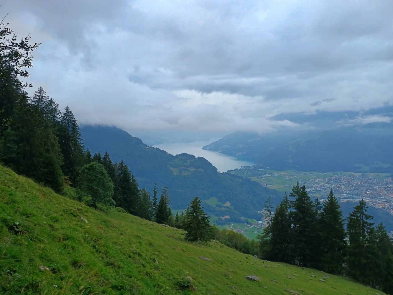 Heading back down on the cog-wheel train the clouds lift for a moment revealing the Brienzersee.