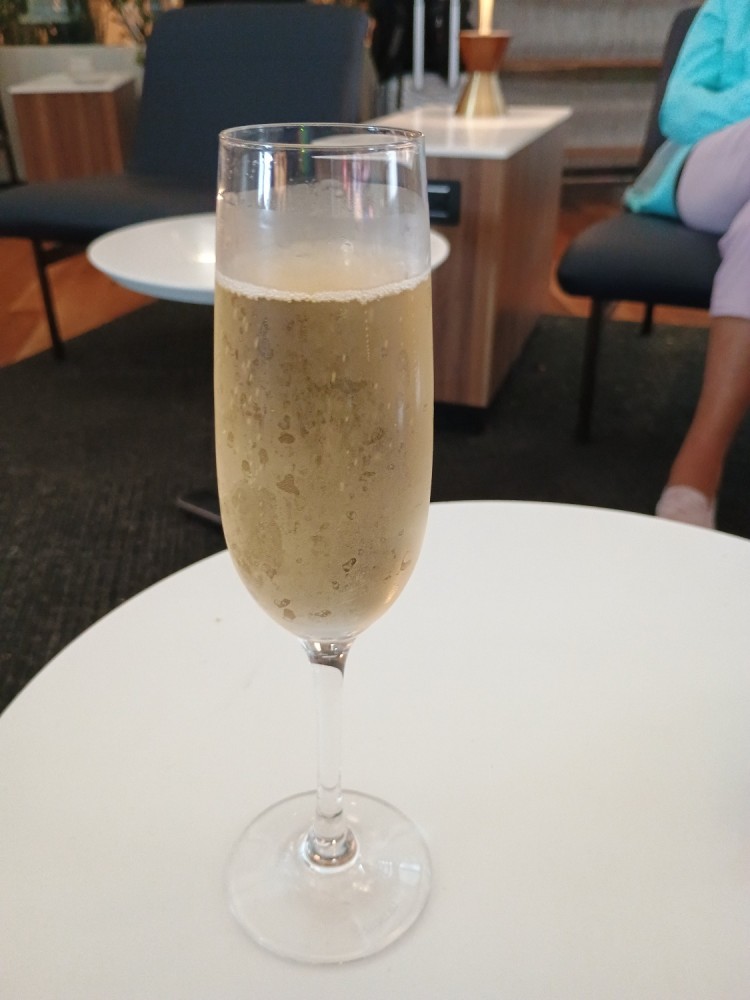 In the lounge at LAX I kicked off my trip with a glass of champagne.