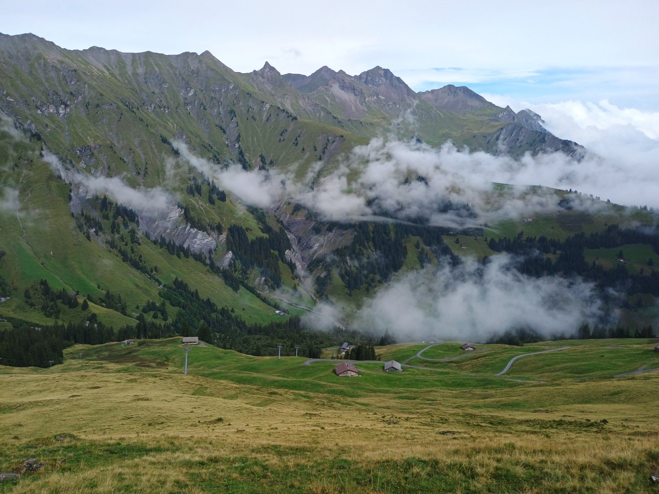At the summit - looking across the Adelboden valley.