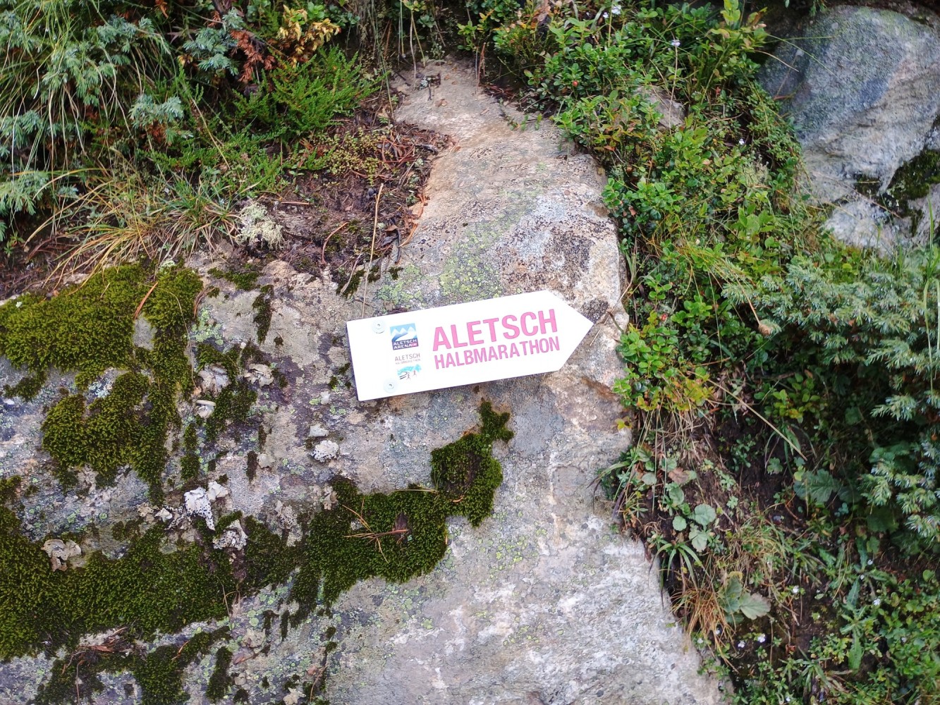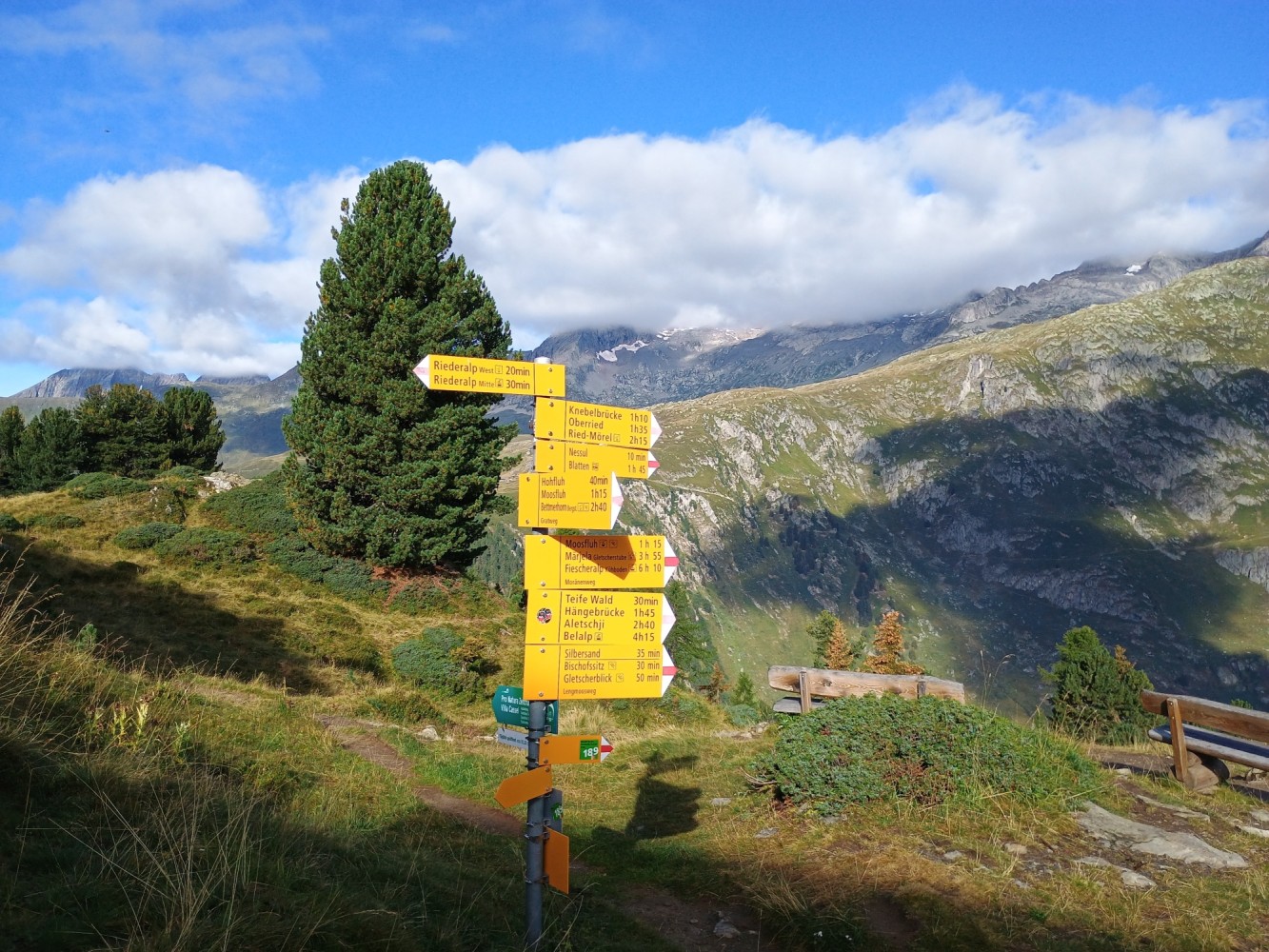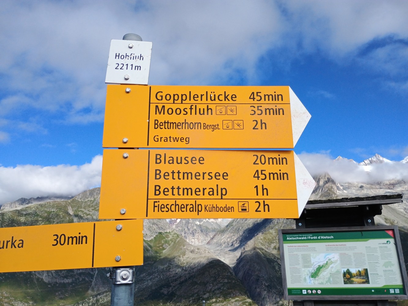 The wanderweg signpost at Hohfluh, about 2/3 of the way. Destination: Moosfluh.