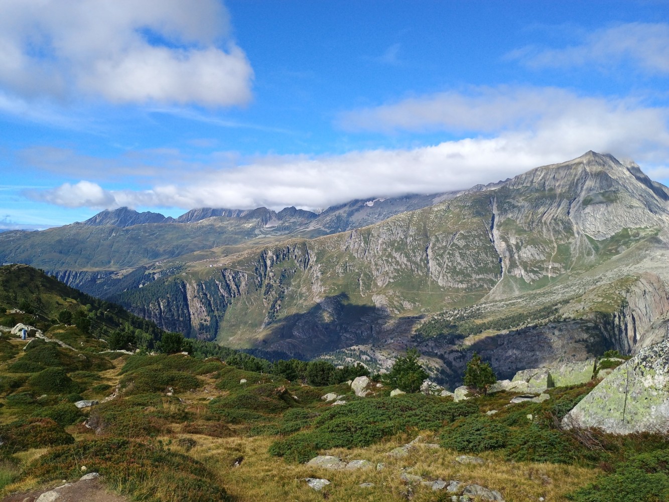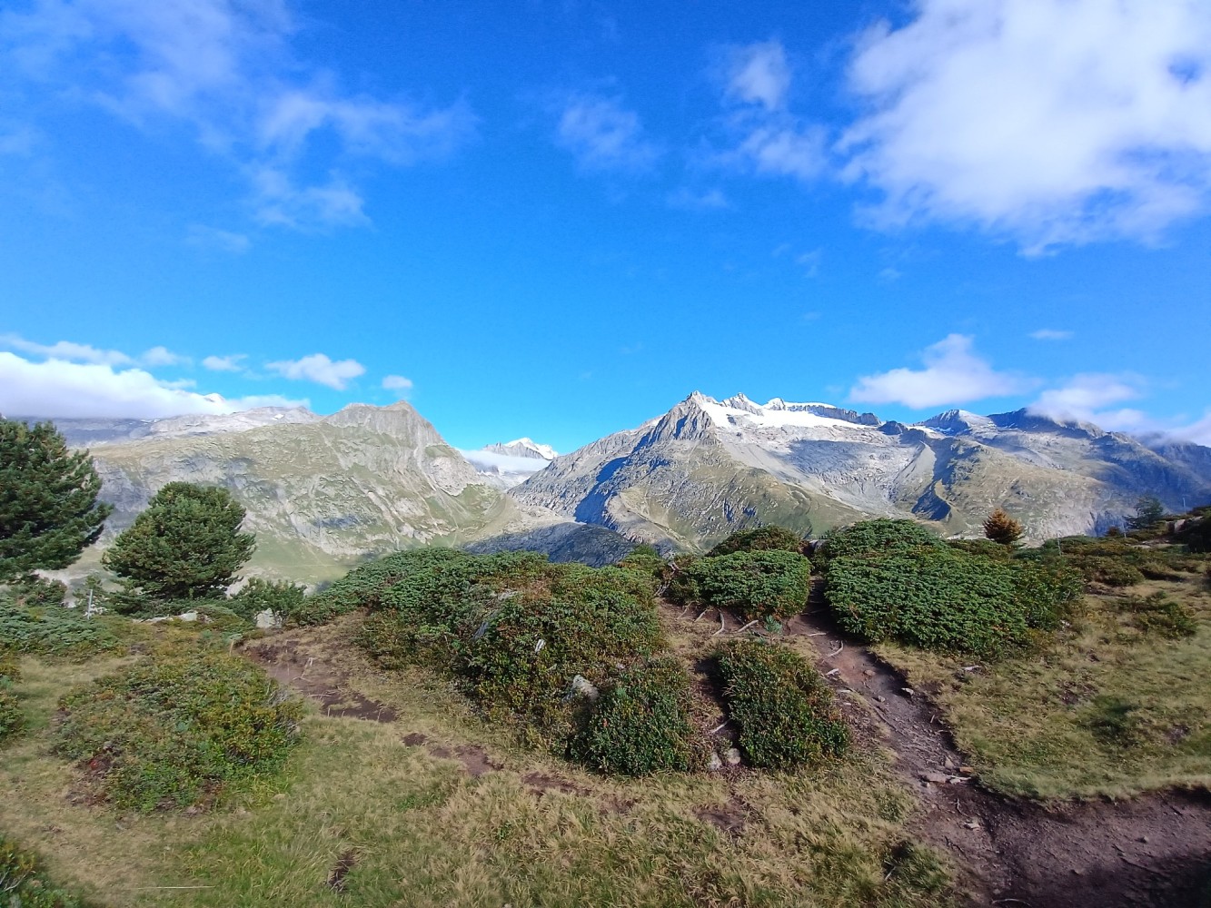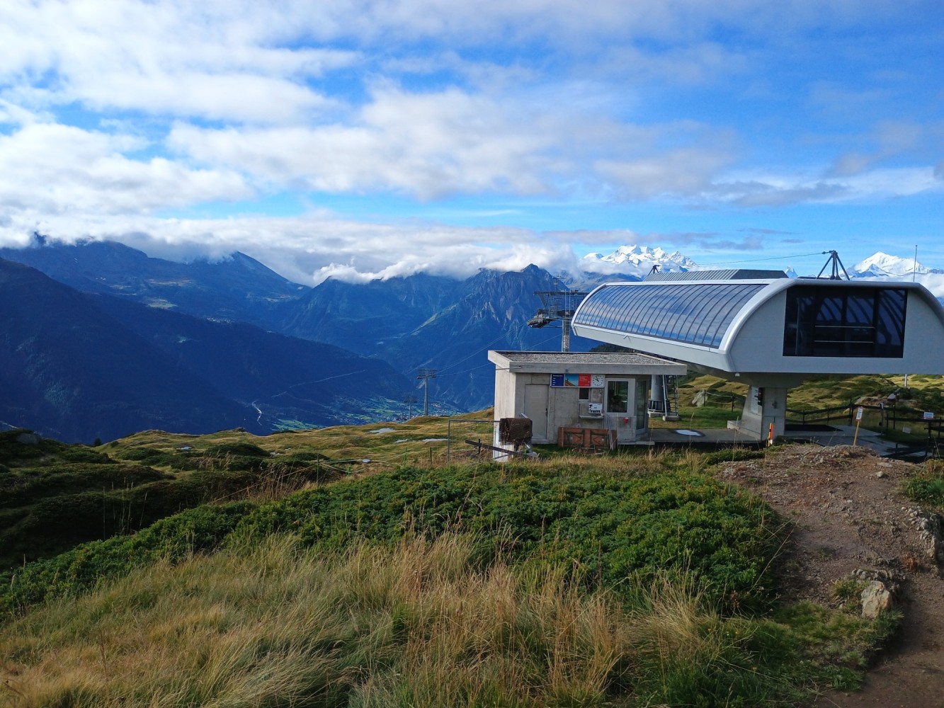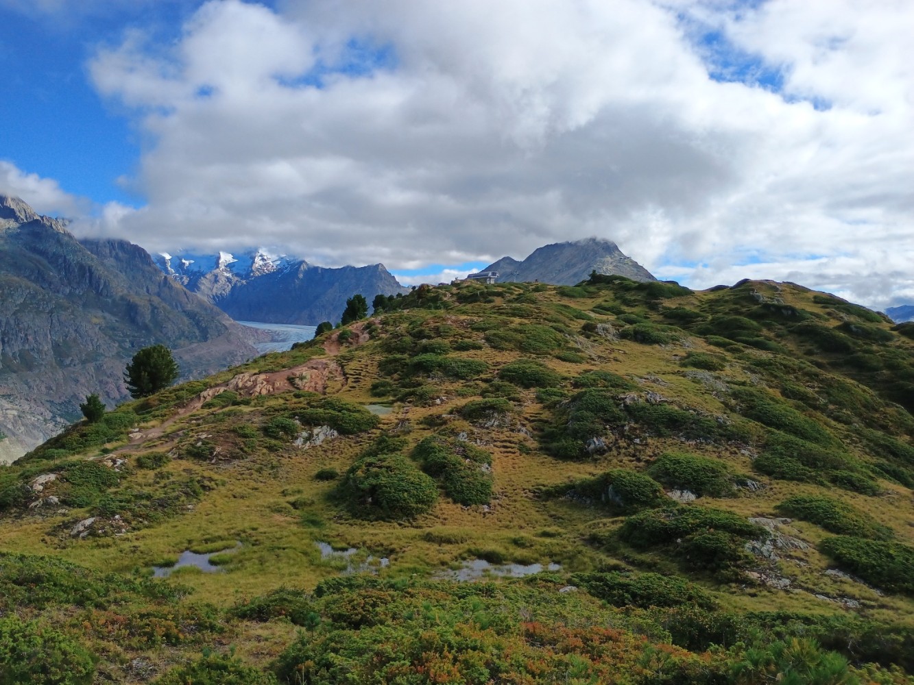 Changed plan! It was finally beautiful weather so I decided to do a hike with a view. Still a bit tired from yesterday's hike in the rain, I did this one with quite a bit of elevation gain. While still cloudy, there were breakthrough moments with spectacular long range views of the southern alps including the Matterhorn. This hike ends at the starting point of the Aletschglacier hike I did with Alex and Claudia in 2021.