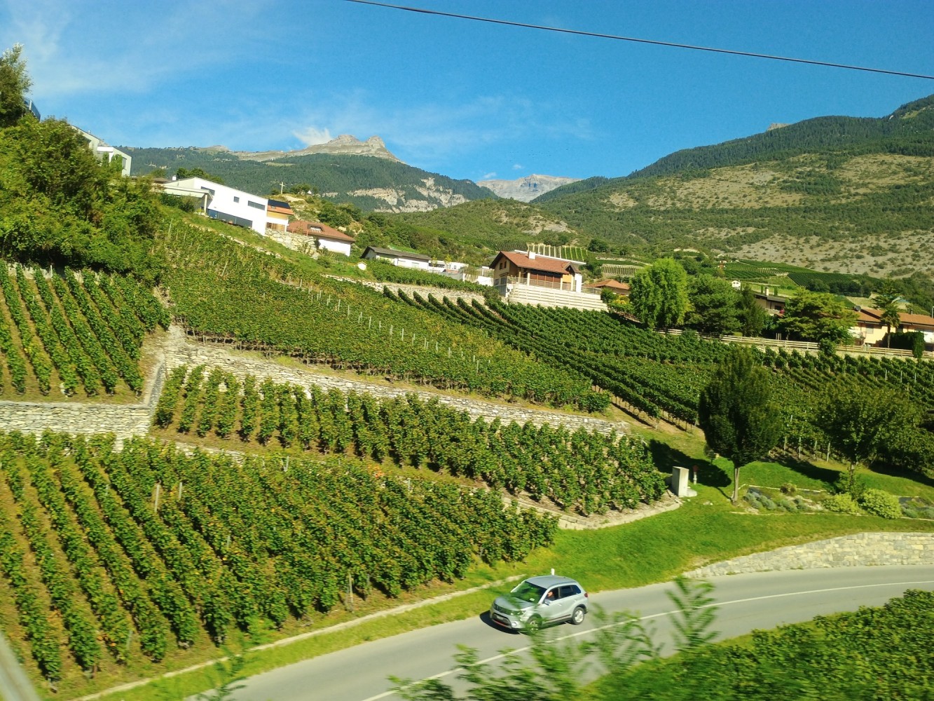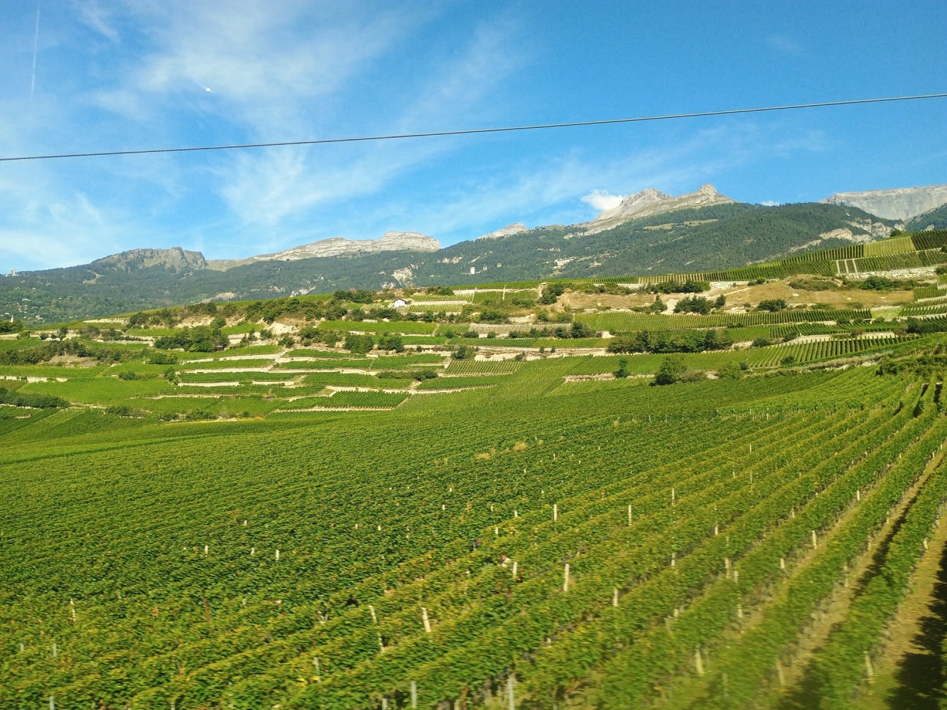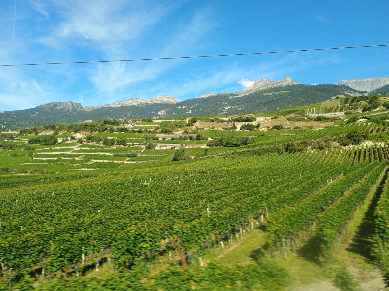 Heading west from Brig, and further along the Rhöne River, there are vineyards.