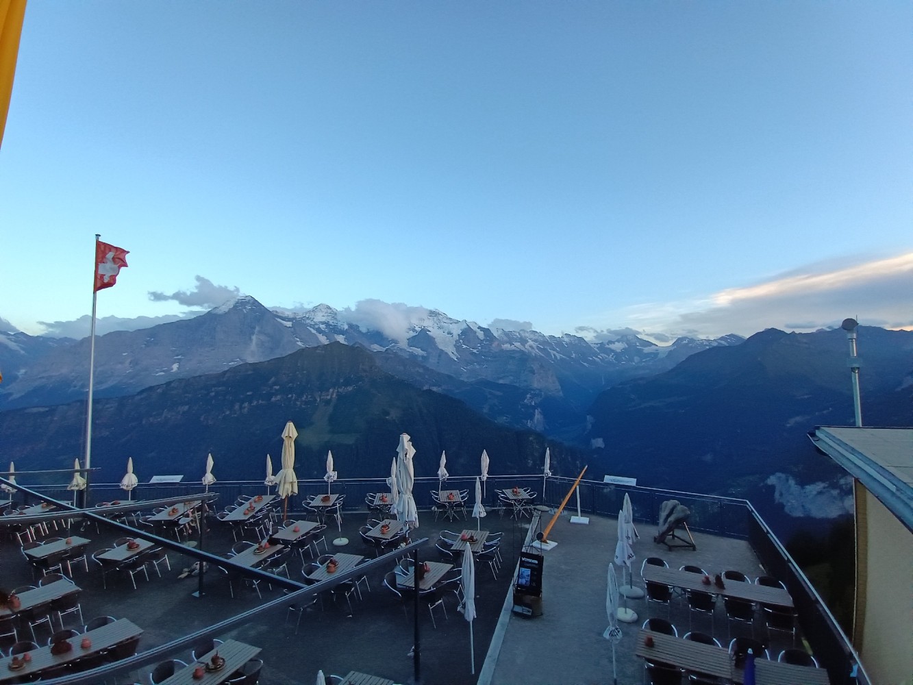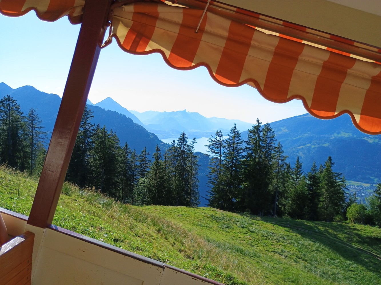 Waiting at a small restaurant across from the Schynige Platte Railway station in Wilderswil.